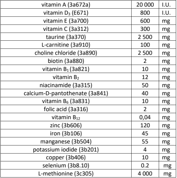 Nutritional additives per 1kg: