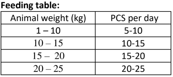 Feeding guide: A functional semi-moist snack is a healthy, meaty, and tasty addition to your puppy’s regular diet. Serve daily as a reward forpositive motivation training, or as a treat for shared moments during the day. Make sure your puppy always has plenty of fresh drinking water.