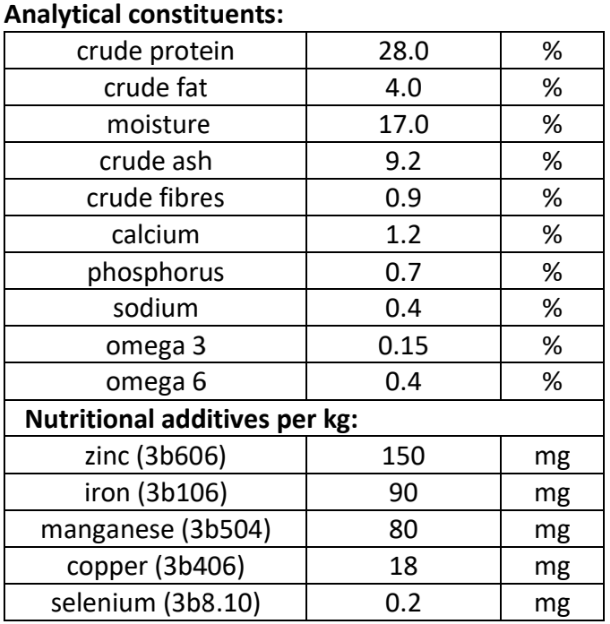 Metabolizable energy: 3 025 kcal/kg