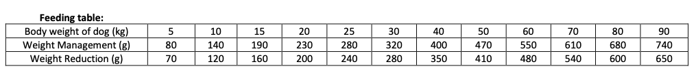 Feeding guide: May be served dry or moistened with lukewarm water. Appropriate diet for reduction of weight - recommended daily food intake shown in a feeding table should be divided into 2-3 equal portions during the day. The recommended daily amount is shown in the feeding table. When serving Brit Premium for first time, use smaller amounts and mix it with previous food and gradually increasing the portion of Brit Premium. Always make sure your dog has plenty of fresh water.