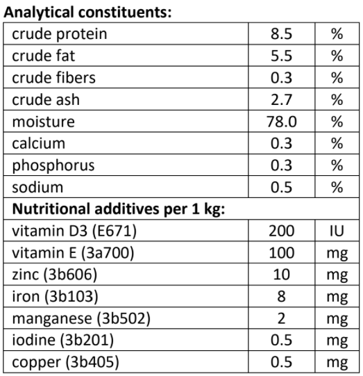 Metabolizable energy: 1 020 kcal/kg