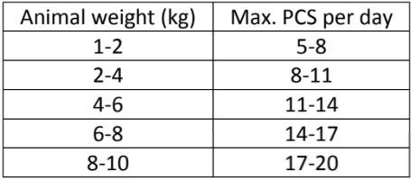 Feeding guide: Snack for reward. Giving your dog a snack as a reward on a regular basis will strengthen your relationship and help develop mutual trust and obedience. Follow the recommended maximum amounts shown in the feeding table.